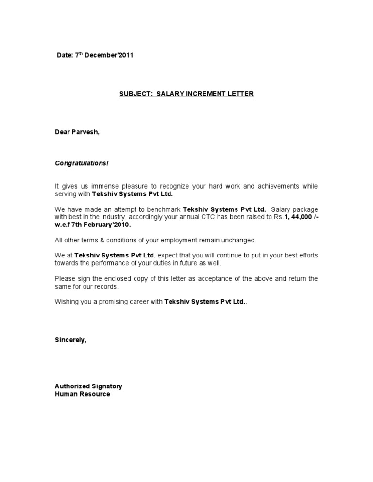 Notification of salary increase letter format.